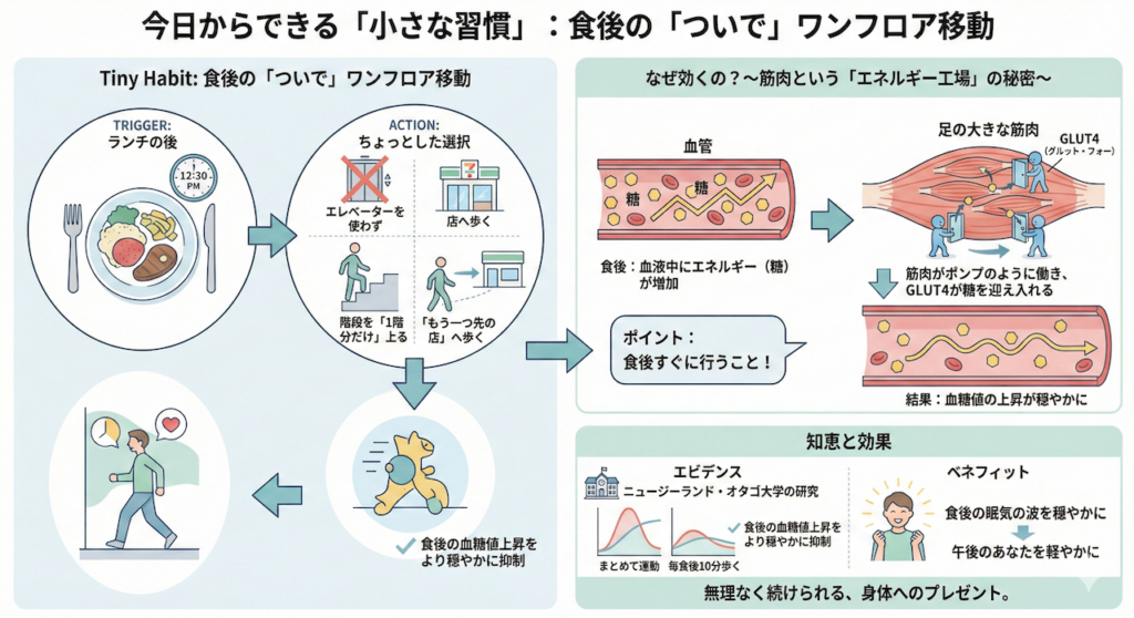Tiny Habit:食後の「ついで」ワンフロア移動